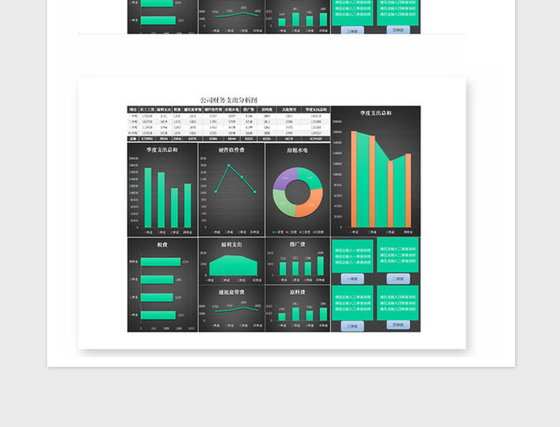 2021年季度員工工資支出財務數據報告圖表免費下載包含