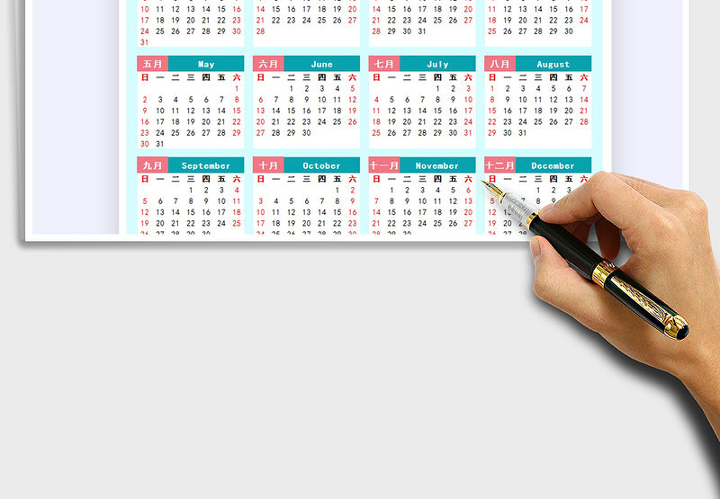 2021辛丑牛年全年營銷日歷多彩模板excel模板包含