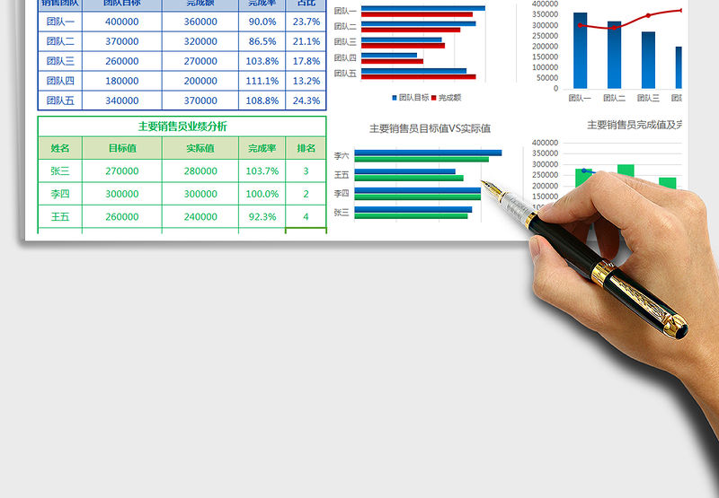 2021年銷售業績看板-自動更新數據圖表包含