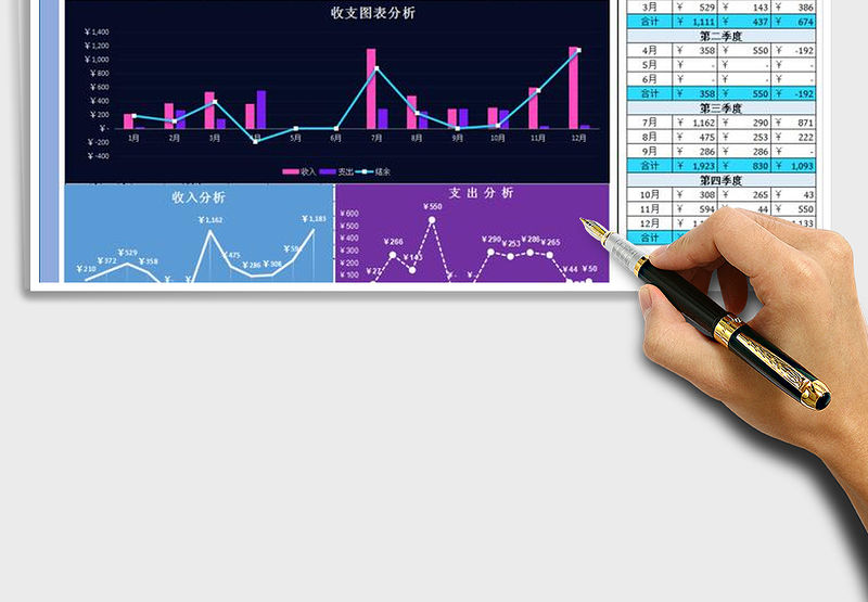 2021年多賬戶收支管理(合計匯總,按月圖表分析)包含