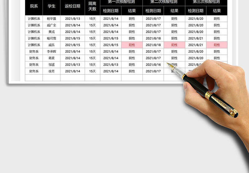 學(xué)生返校隔離核酸檢測表 Array