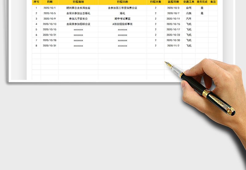 2021年出差行程計劃表包含
