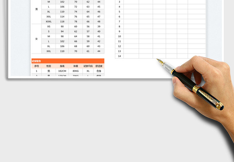 2022員工服裝尺碼統(tǒng)計(jì)免費(fèi)下載