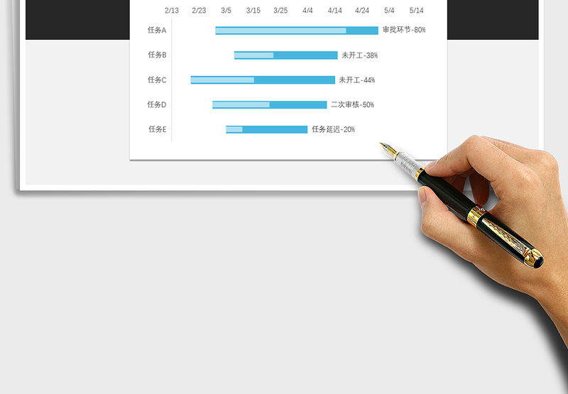 藍色項目進度甘特圖(自動進度條)Excel表格包含