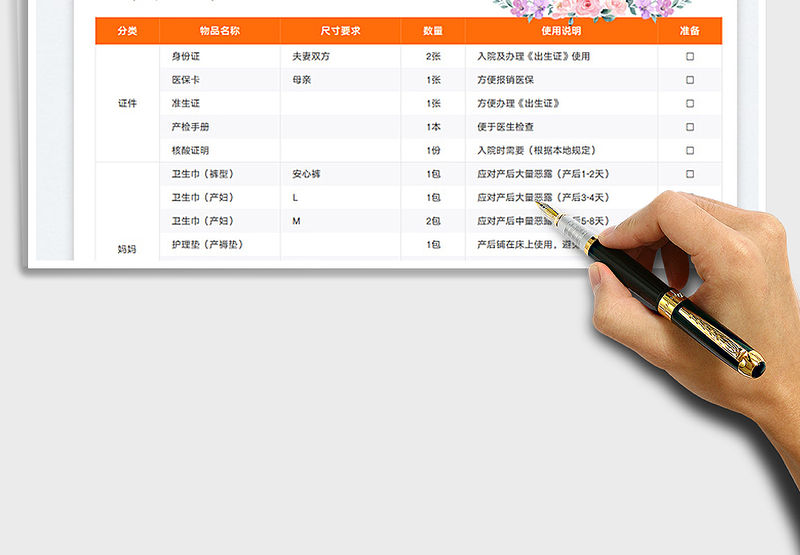 旅游必備物品清單一覽excel表包含
