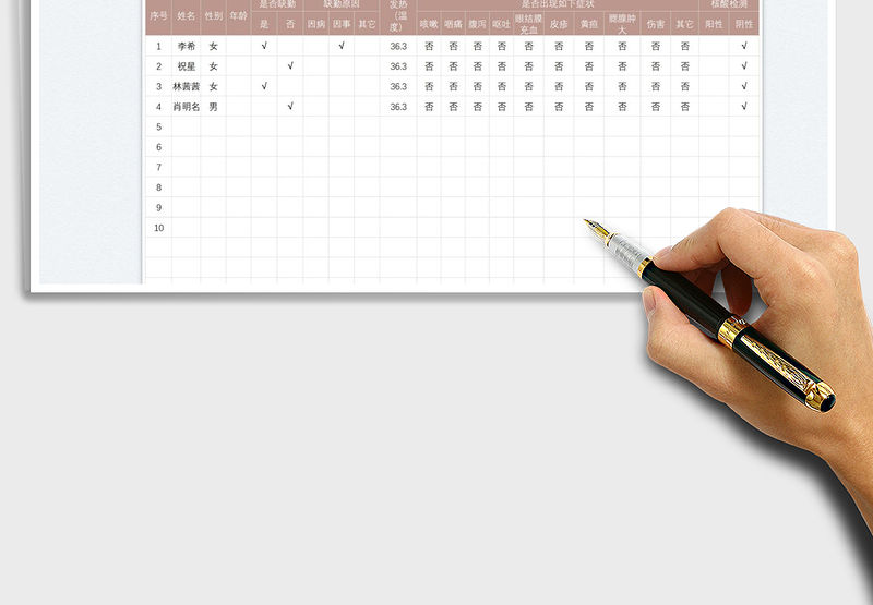 > 疫情防控 > 2022學(xué)生健康監(jiān)測(cè)日?qǐng)?bào)表(核酸檢測(cè))免費(fèi)下載.XLSX 【圖片、文字、動(dòng)畫均可編輯】