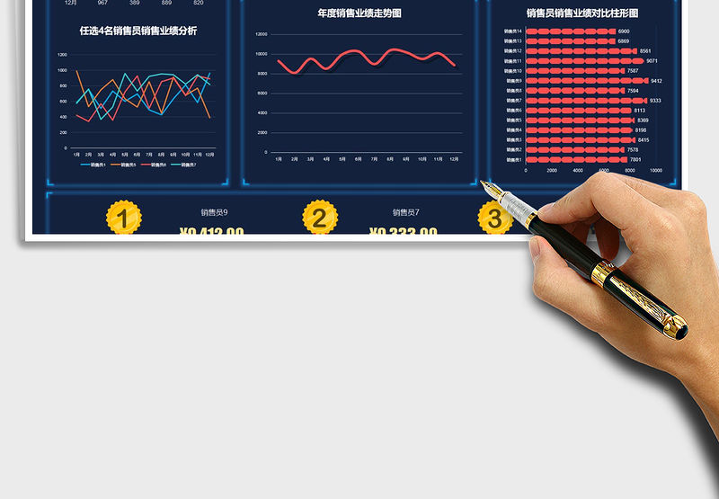 2021年銷售員銷售業績可視化柱形圖餅圖分析包含