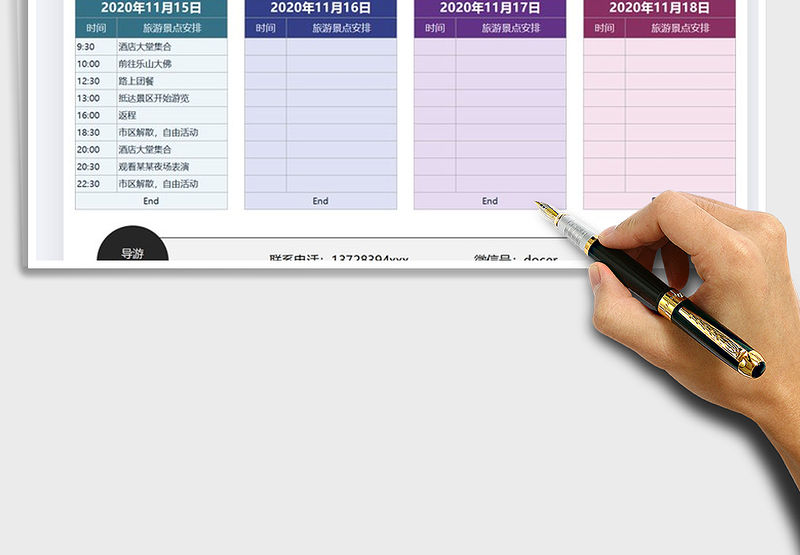 2021年旅游路線及費用預算表(簡潔大方)免費下載包含