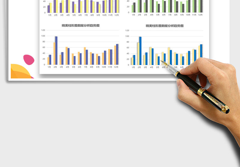 2021年柱形圖-折線圖-平均線組合圖表(紅黃色)包含