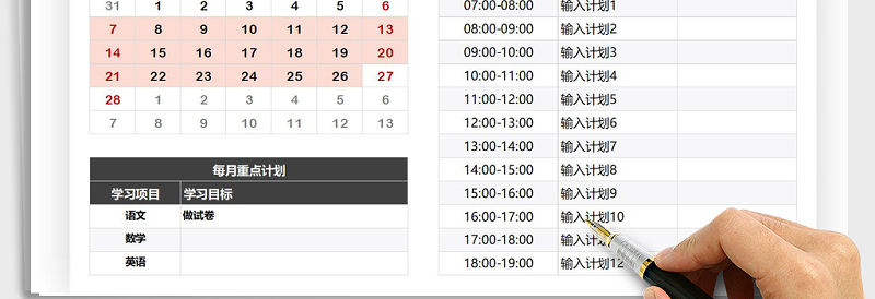 2021年工作學習計劃表-學習計劃-萬年歷包含