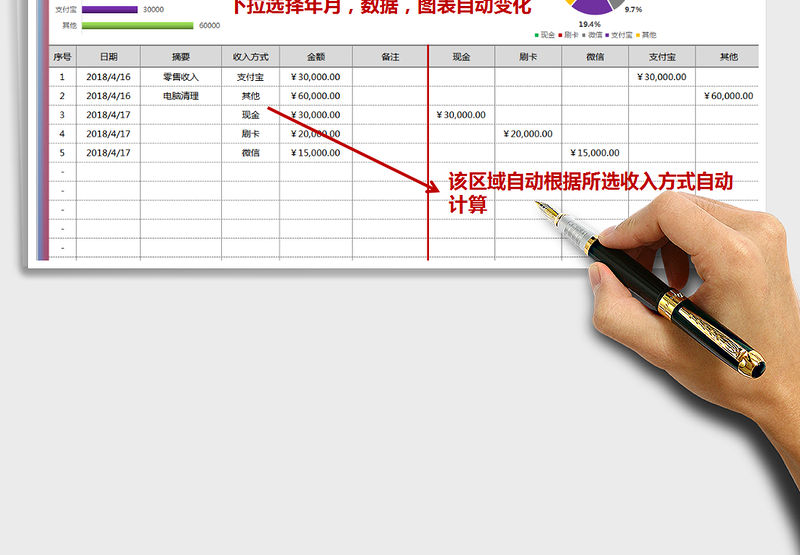 銷售收入統(tǒng)計(jì)(自動(dòng)分類計(jì)算,圖表展示,可查詢) Array