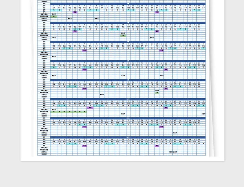 2021辛丑牛年全年營銷日歷多彩模板excel模板包含