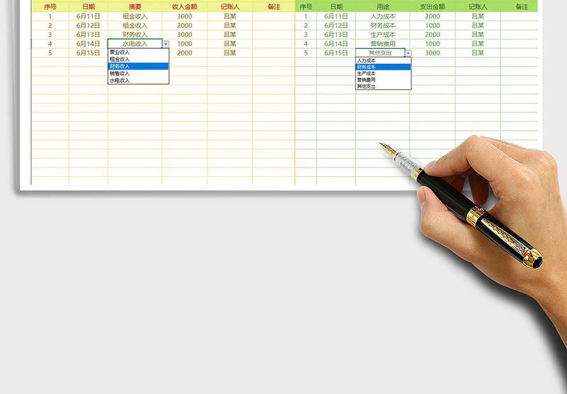 2021年收支明細表(自定義時間段統計)包含