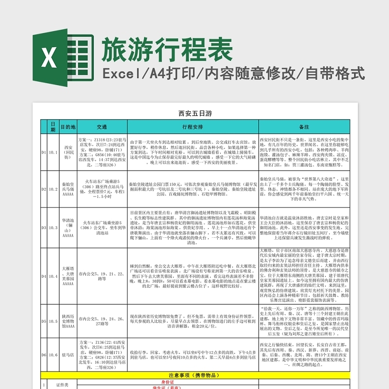 2022旅游行程安排(五日游)免費下載包含