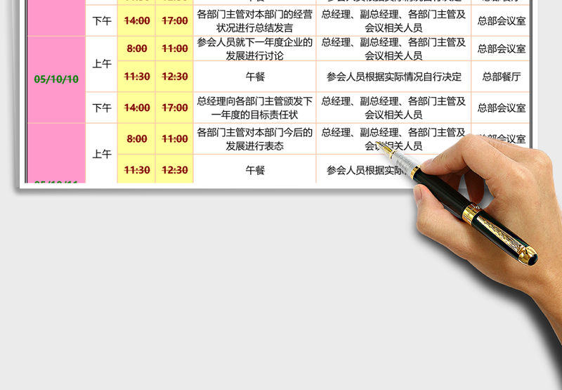 企業(yè)重大會議日程安排提醒表excel模板