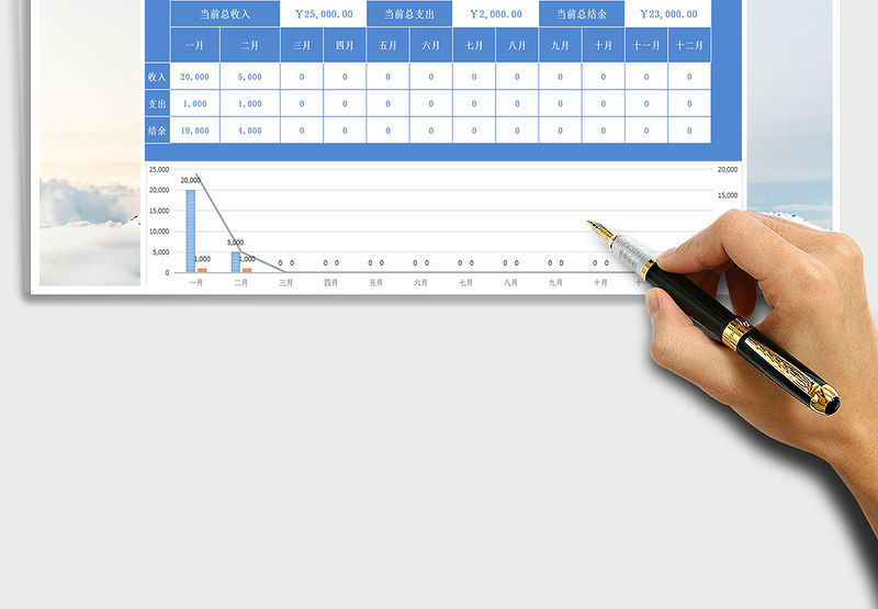 家庭年度記賬單(自動(dòng)匯總,圖表顯示) Array
