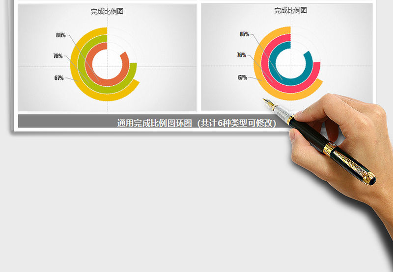 2021年通用色系圓環圖餅圖表模板 對比占比包含