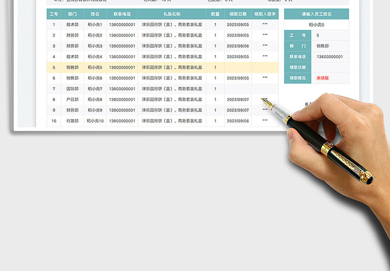 中秋節(jié)禮品發(fā)放登記表(內(nèi)置查詢)