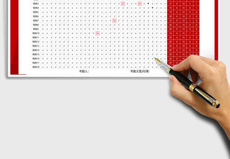 紅色自動統(tǒng)計考勤表 Array