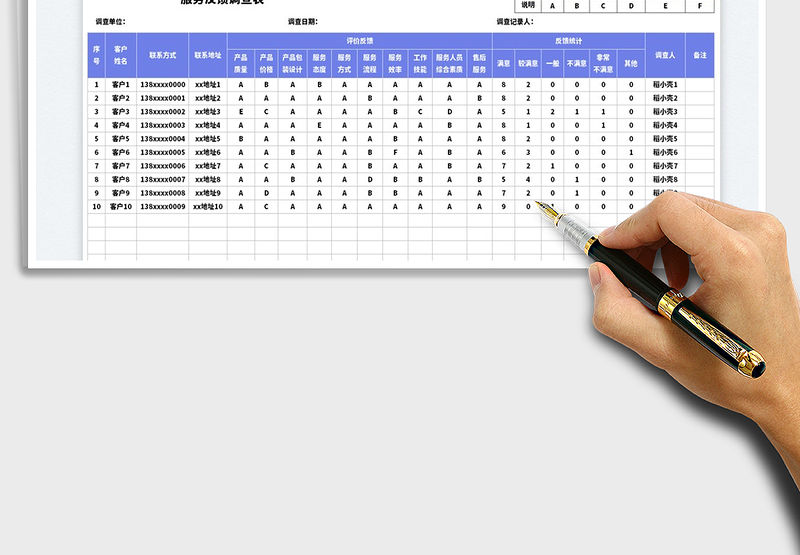 自動化圖表調查問卷excel模板包含