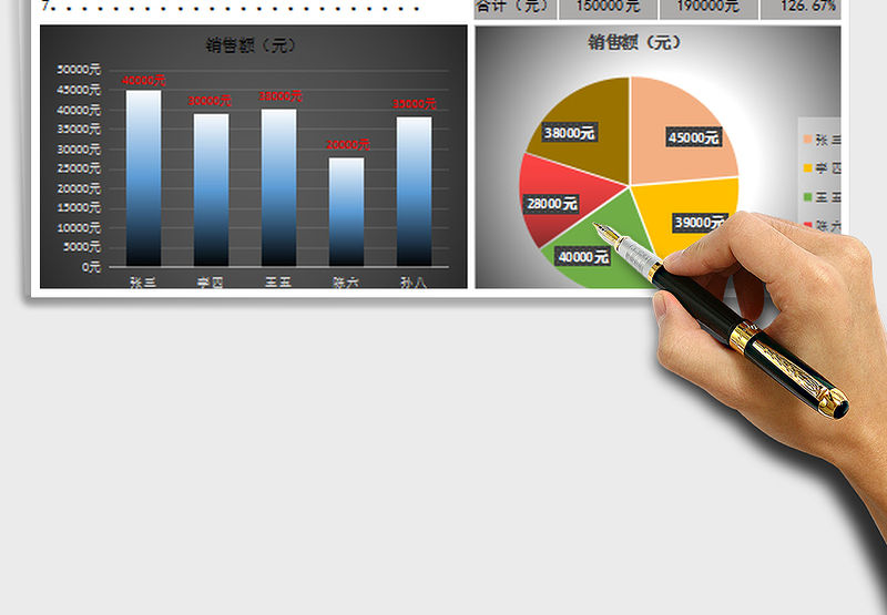 2021年銷售員銷售業績可視化柱形圖餅圖分析包含