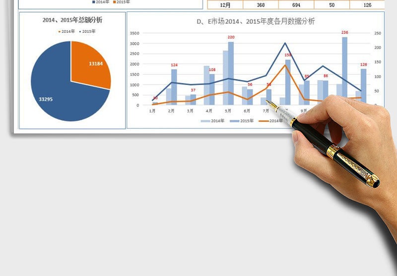 年度各市場銷售數據圖表分析Excel表格模板包含