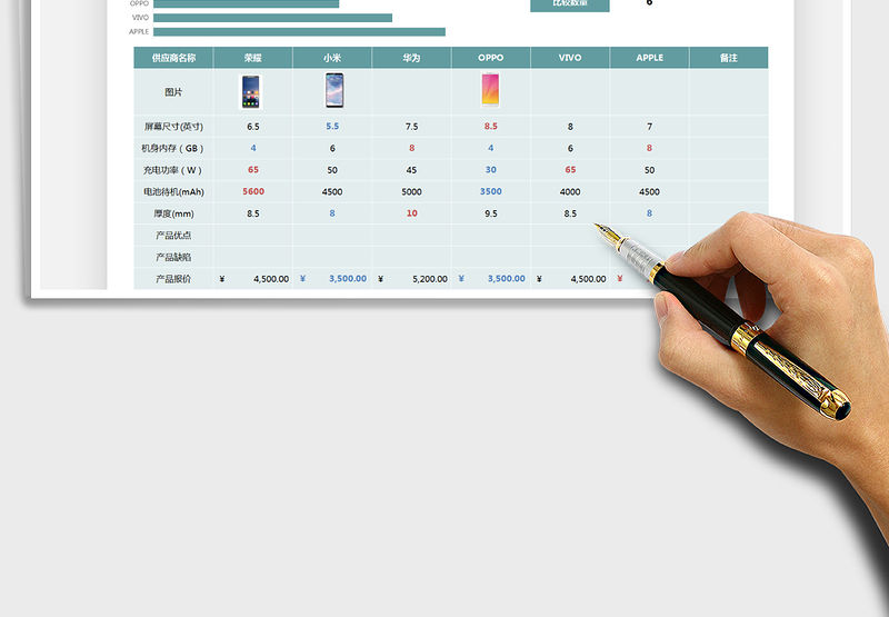 產品價格對比分析Excel模板包含