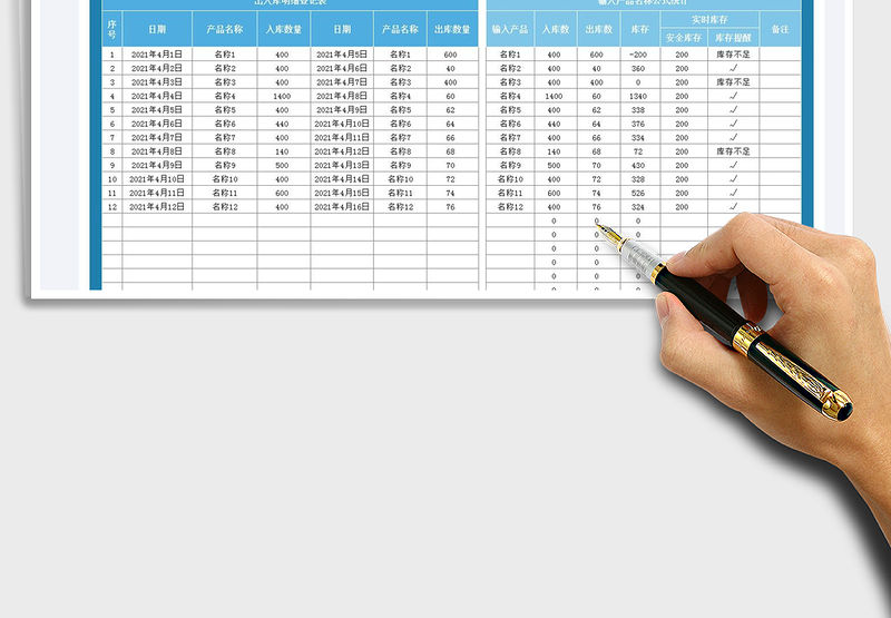 2021出入庫管理明細表(庫存預警)免費下載包含