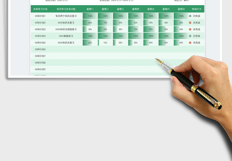 2021年一周項目工作計劃進度表包含