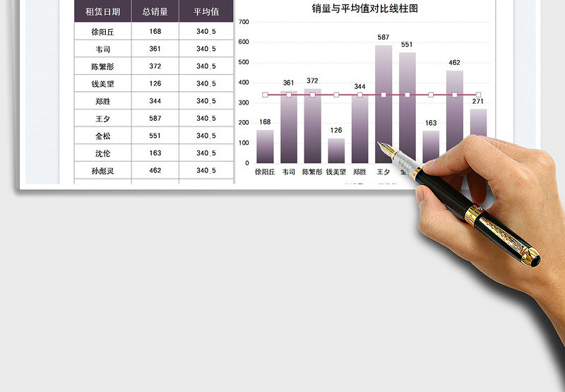 月份數據對比走勢柱狀折線標記圖excel表格模板包含