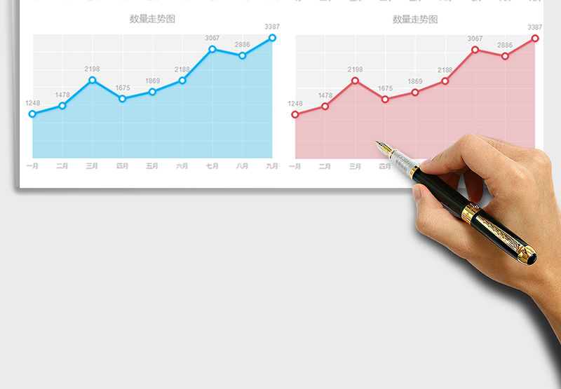 全年每月銷售業績情況折線面積組合圖EXCEL表格模板包含