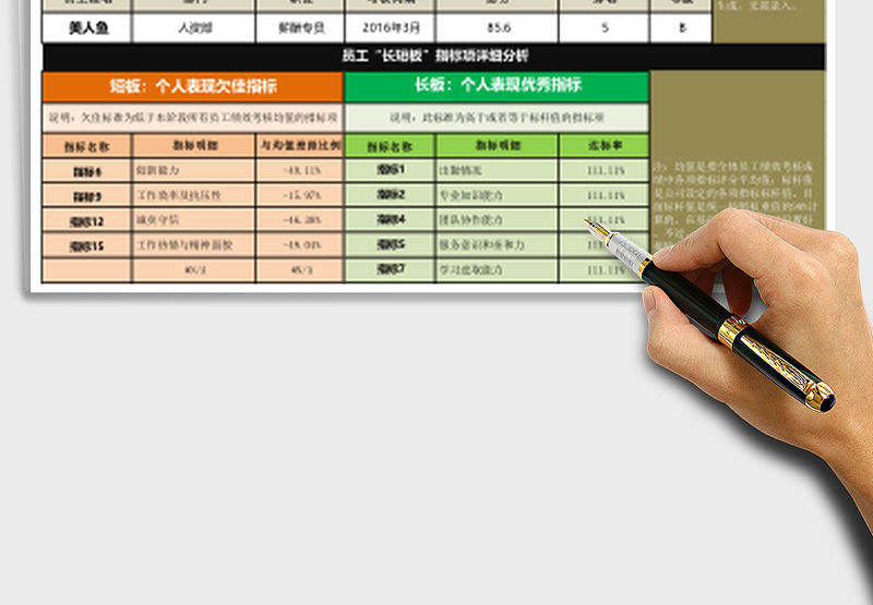 2021年員工長(zhǎng)短板分析工具(依據(jù)指標(biāo)評(píng)分,手工輸入數(shù)據(jù))