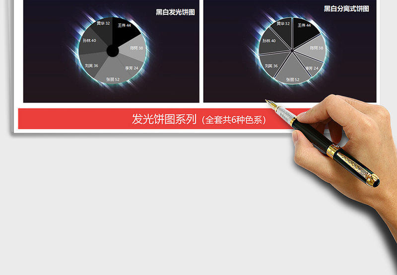 科技感發(fā)光色系餅圖 圖表模板占比分析 Array