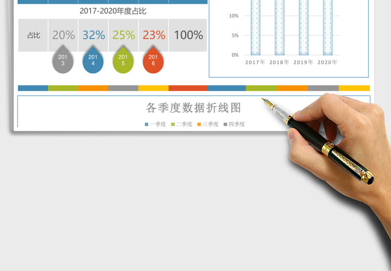 立體各年度按季度數據分析表excel模板包含