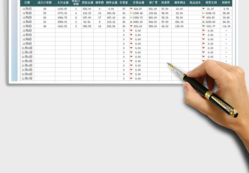 店鋪銷售總金額記錄月報表Excel模板表格包含