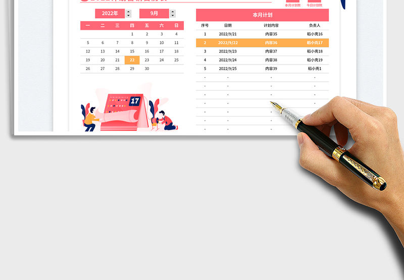 2021辛丑牛年全年營銷日歷多彩模板excel模板包含