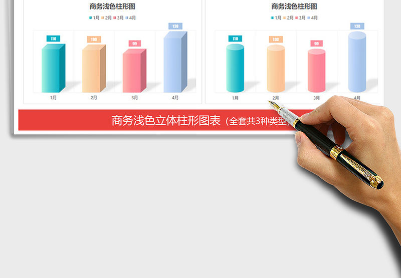 2021年商務小清新淺色立體柱形圖表模板免費下載包含