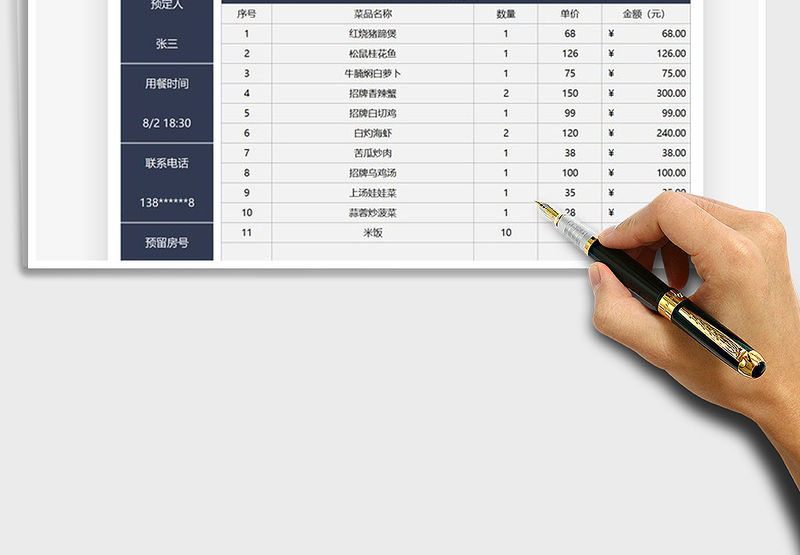 2022飯店餐廳預(yù)約點(diǎn)菜明細(xì)表免費(fèi)下載