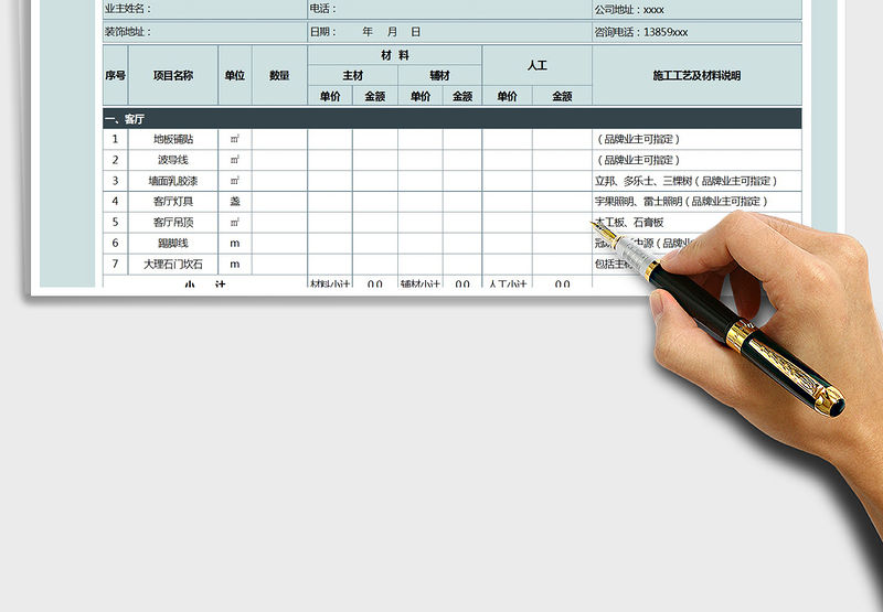 2021年裝修報價單自動統計包含