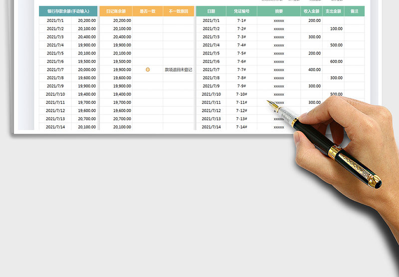 2021銀行存款與財務(wù)日記賬對比登記表免費下載