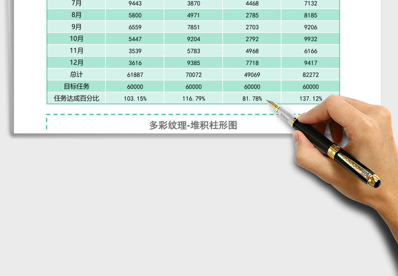 綠色員工業(yè)績統(tǒng)計堆積柱形圖Excel模板