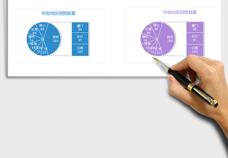 2021年餅圖圖表 藏青艷綠系圖表模板包含
