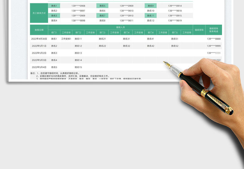 2021年值班安排表(日期自動變動,天數自動計算,可打印)包含
