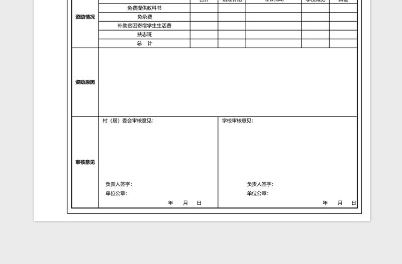 家庭經(jīng)濟困難學(xué)生資助申請表Excel表格