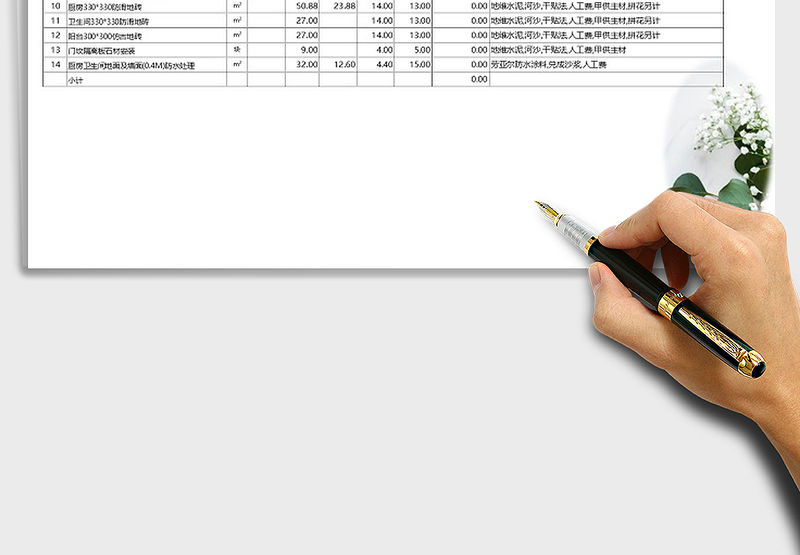 EXCEL圖表模版 裝修工程預算表包含