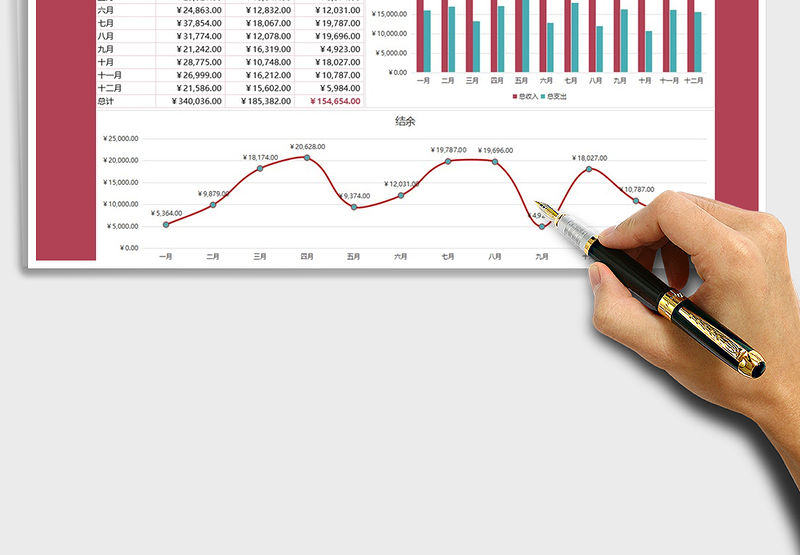 2021年財務月度收支明細統計表(自動計算)免費下載包含