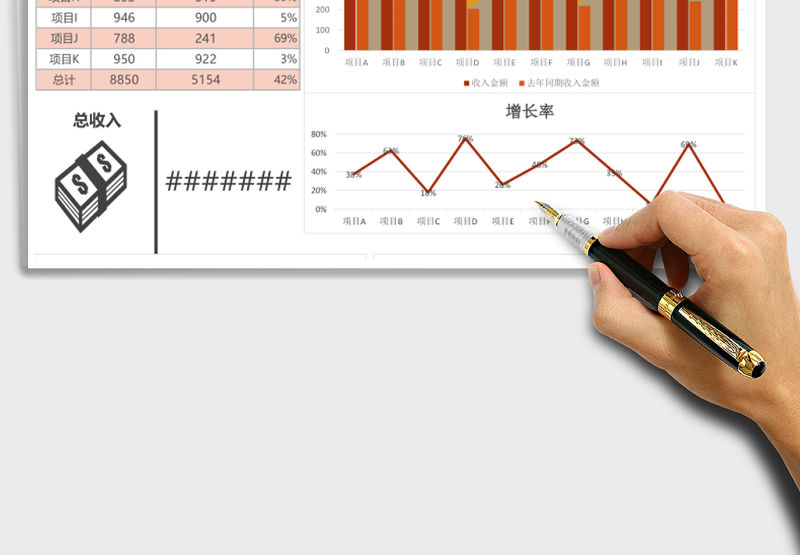 圖表模板財務(wù)收入同期分析一覽圖excel表格模板