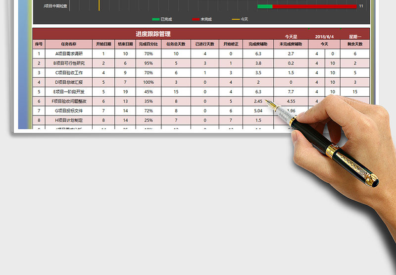 項目進度跟蹤甘特圖橫道圖Excel表格包含