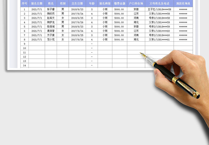 2021幼兒班報(bào)名登記表免費(fèi)下載