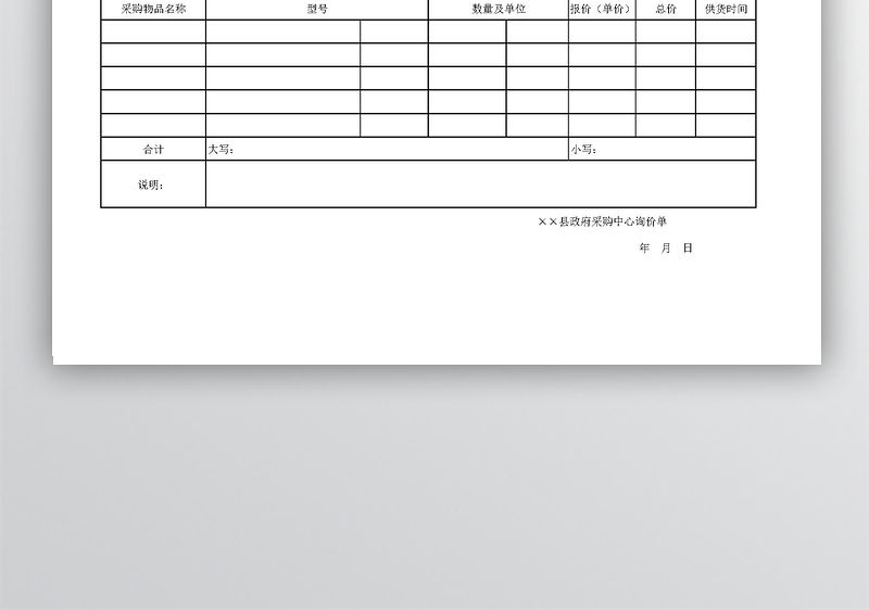 工圖網提供政府采購中心詢價表EXCEL模版供會員免費下載。更多精彩黨課PPT素材,盡在工圖網。